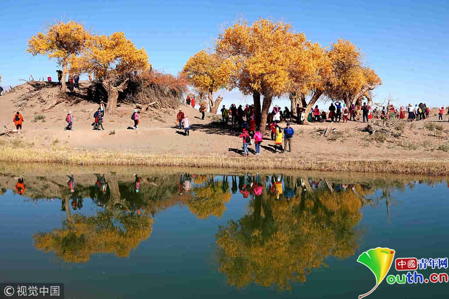 中國(guó)青年網(wǎng)北京10月9日電 2018年10月7日至8日,內(nèi)蒙古自治區(qū)阿拉善盟額濟(jì)納旗,地處巴丹吉林沙漠。額濟(jì)納河兩岸壯觀的胡楊林堪稱大漠的一顆綠色明珠,每年深秋時(shí)節(jié)的第一場(chǎng)秋霜過(guò)后,大片的胡楊樹(shù)葉由綠變黃,一眼望去,陽(yáng)光下金色的樹(shù)葉襯著湛藍(lán)的天空于風(fēng)中婆娑起舞,鮮明的影調(diào),亮麗的色彩,令人流連忘返。