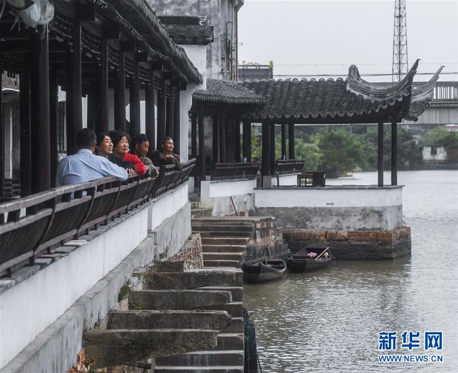 10月10日,村民在泉家潭村沿河長(zhǎng)廊中休息。 新華社記者 徐昱 攝
