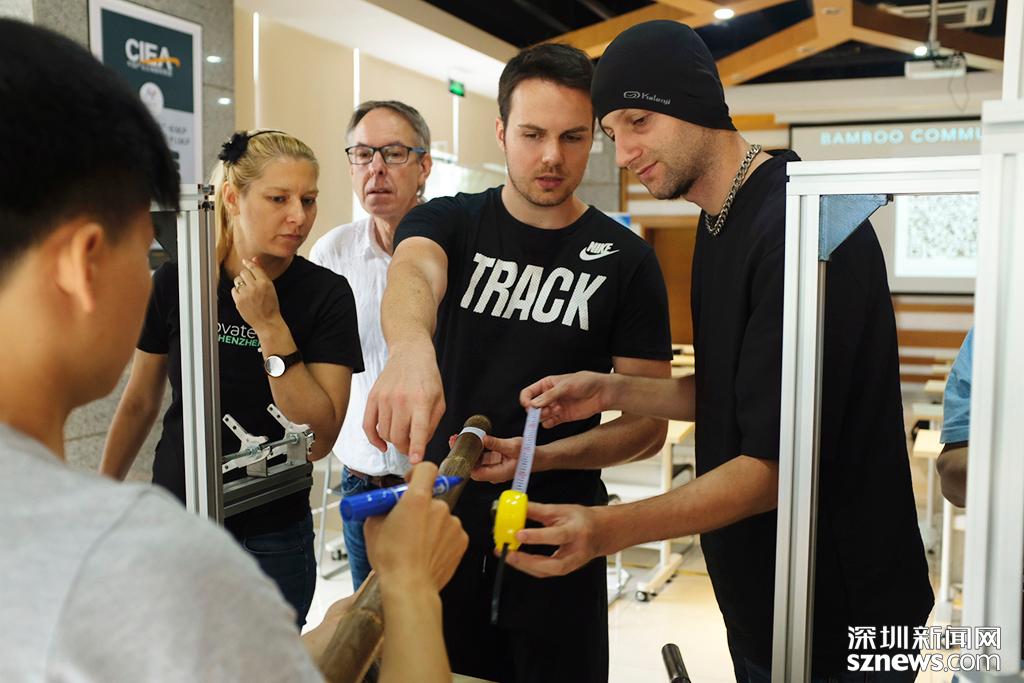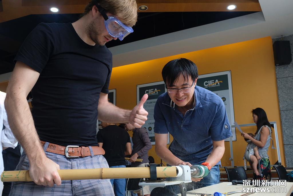 本次工作坊屬于綠色智造創(chuàng)客工坊的一部分,吸引了來自不同國家的大約20名學(xué)員參與,學(xué)員先通過挑選三根大的竹子和四根小的竹子來做單車的前三角和后三角,之后用機器打磨讓竹子變成合適的大小,之后進行組裝,最后變成一輛竹子單車。