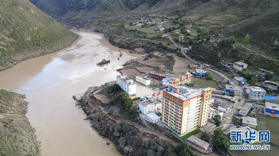 這是河水水位下降后的西藏江達(dá)縣波羅鄉(xiāng)(10月13日無人機(jī)拍攝)。 11日晨,金沙江流經(jīng)的川藏交界江達(dá)縣波羅鄉(xiāng)波公村發(fā)生山體滑坡,形成堰塞湖。 江達(dá)縣波羅鄉(xiāng)地處藏曲河與金沙江交匯處的岸邊,受這次山體滑坡影響較大,一度被淹。記者在藏曲河畔看到,公安、消防、國(guó)電、測(cè)繪、氣象、武警、解放軍等搶險(xiǎn)救災(zāi)人員正在緊張工作。 據(jù)現(xiàn)場(chǎng)人員介紹,今天波羅鄉(xiāng)所在地水位下降迅猛。記者目睹河岸兩側(cè)之前被淹過的痕跡清晰可見,通往波羅鄉(xiāng)被淹沒的橋梁此時(shí)部分已經(jīng)露出水面。 新華社記者 劉東君 攝
