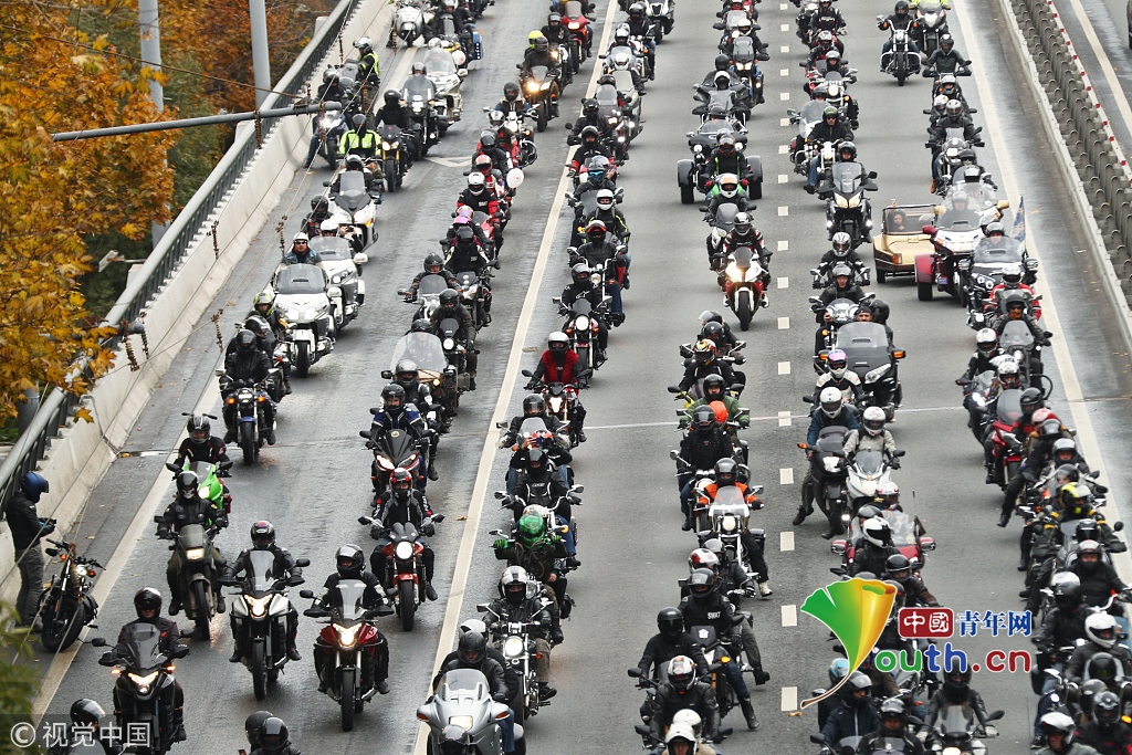 當日,2018唐山南湖重機車文化節(jié)在河北唐山南湖公園丹鳳朝陽廣場舉行,吸引來自全國各地近100家重機俱樂部的近千名騎手和500余臺摩托車參加文化節(jié)的巡游活動。
