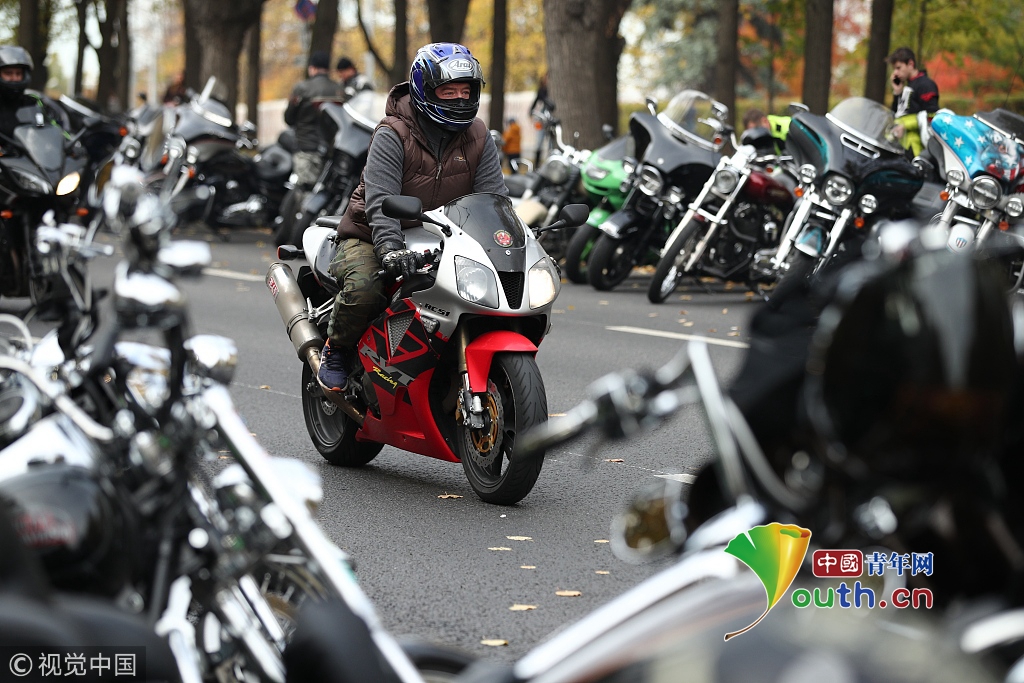 當地時間2018年10月13日,俄羅斯莫斯科,當地舉行摩托車游行。