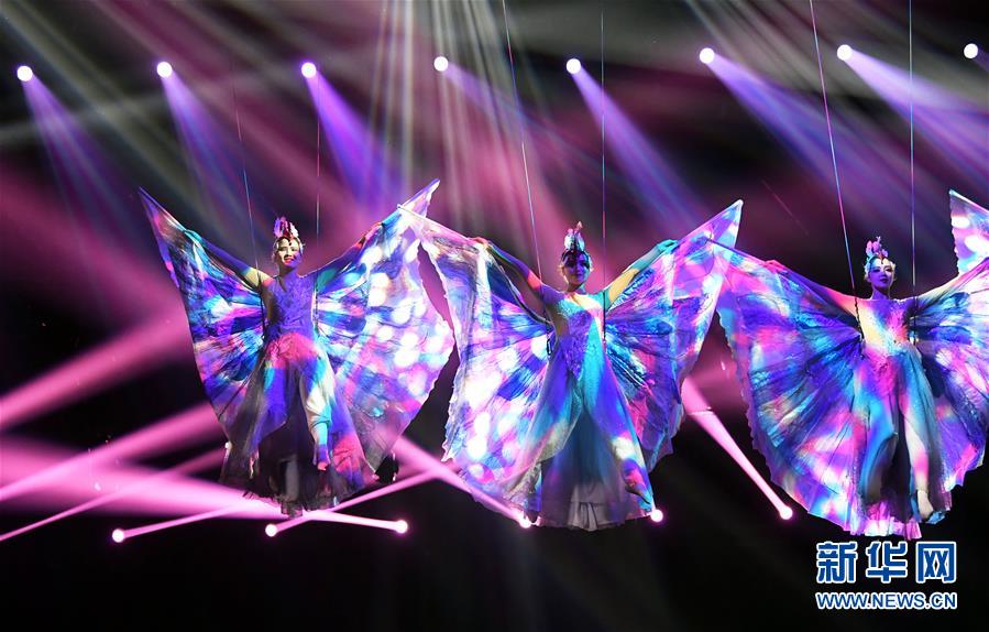 10月16日,演員在濮陽國(guó)際雜技藝術(shù)節(jié)上表演雜技《如蝶飛舞》。新華社記者 朱祥 攝