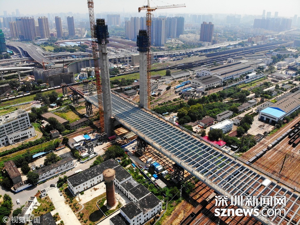 深圳新聞網(wǎng)訊  2018年8月19日,鄭州,跨亞洲最大火車站編組站的農(nóng)業(yè)路高架鄭北大橋工程開始最后一輪頂推,長度為160米,約占總頂推長度的1/3,頂推重量達到9000噸。
