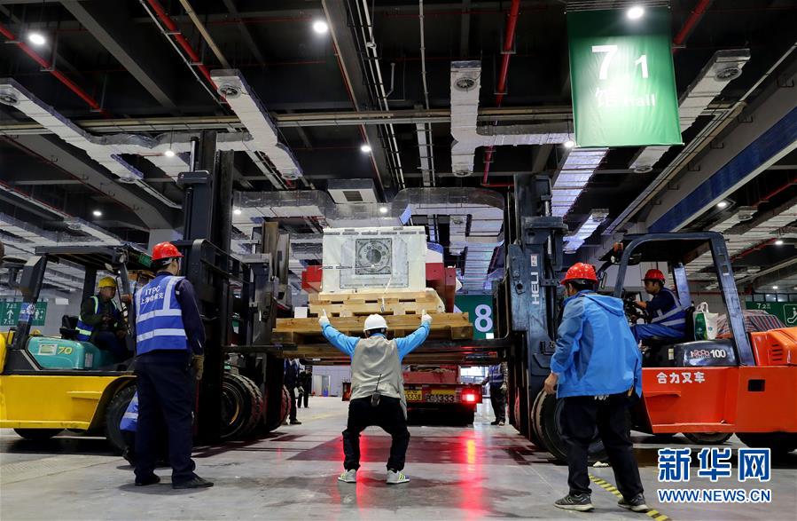 10月22日,現(xiàn)場工人動(dòng)用四臺叉車同時(shí)作業(yè),將“金牛座”龍門銑床核心部件溜板滑枕抬起后等待卡車就位裝車。 當(dāng)日,來自德國的首屆進(jìn)口博覽會最大展品——“金牛座”龍門銑床完成初步組裝,將運(yùn)往國家會展中心(上海)3號館進(jìn)行最后的安裝施工。這是德國瓦德里??票す狙邪l(fā)的機(jī)床設(shè)備,高約8米,占地面積約200平方米,將在智能及高端裝備區(qū)進(jìn)行展出。 新華社記者方喆攝