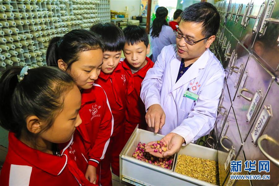 10月22日,安平縣啟蒙小學(xué)學(xué)生在安平縣中醫(yī)院的中藥房識別各類中藥材。 當(dāng)日是世界傳統(tǒng)醫(yī)藥日,河北省安平縣啟蒙小學(xué)組織學(xué)生走進(jìn)安平縣中醫(yī)院,通過參觀中藥房、認(rèn)識常見中藥、感受中藥加工等方式,向小學(xué)生普及中醫(yī)藥知識,弘揚傳統(tǒng)中醫(yī)藥文化。 新華社記者李曉果攝