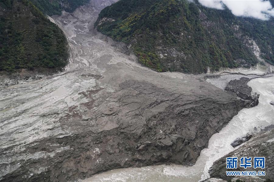 堰塞體現(xiàn)場(chǎng)圖片(10月18日攝)。 新華社記者 普布扎西攝