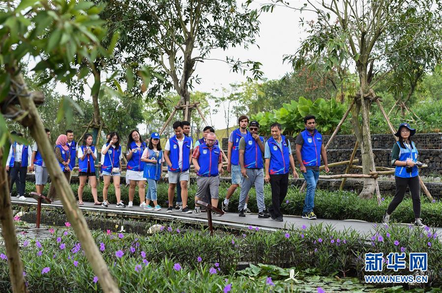 在??谑忻郎岷峪P翔濕地公園,參加濕地保護(hù)志愿服務(wù)講解員培訓(xùn)的留學(xué)生志愿者一邊參觀一邊聽中國志愿者講解(10月21日攝)。 ??谑续P翔濕地公園內(nèi)流水潺潺,綠草如茵。很難想象,這個市民游客休閑散步的好去處、具有強(qiáng)大污水凈化功能的濕地公園,兩年前還是臭氣熏天、人們避之不及的垃圾堆填場。 把生態(tài)文明建設(shè)放到更加突出的位置,近兩年來??谑幸詽竦爻鞘薪ㄔO(shè)為突破口,不斷創(chuàng)新城市生態(tài)治理,著力改善生態(tài)民生,在生態(tài)文明建設(shè)上闖關(guān)探路。 新華社記者 楊冠宇 攝
