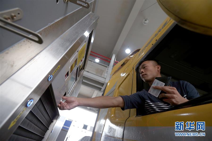 10月24日,港珠澳大橋珠海公路口岸通車的首票進(jìn)口貨物貨車司機(jī)在抵達(dá)一站式貨車進(jìn)境驗(yàn)放通道時(shí)按指紋。 當(dāng)日,港珠澳大橋正式通車。