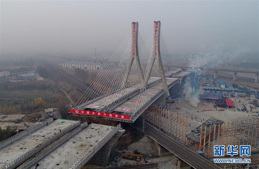 河北唐山:斜拉轉(zhuǎn)體橋轉(zhuǎn)體成功