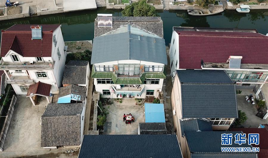 現(xiàn)年72歲的姚苗英(左)與丈夫在自家新修建的樓房前留影(10月23日攝)。姚苗英家的老房因修建公路拆遷,新房是在村里統(tǒng)一規(guī)劃下新址新建。 新華社記者 季春鵬攝