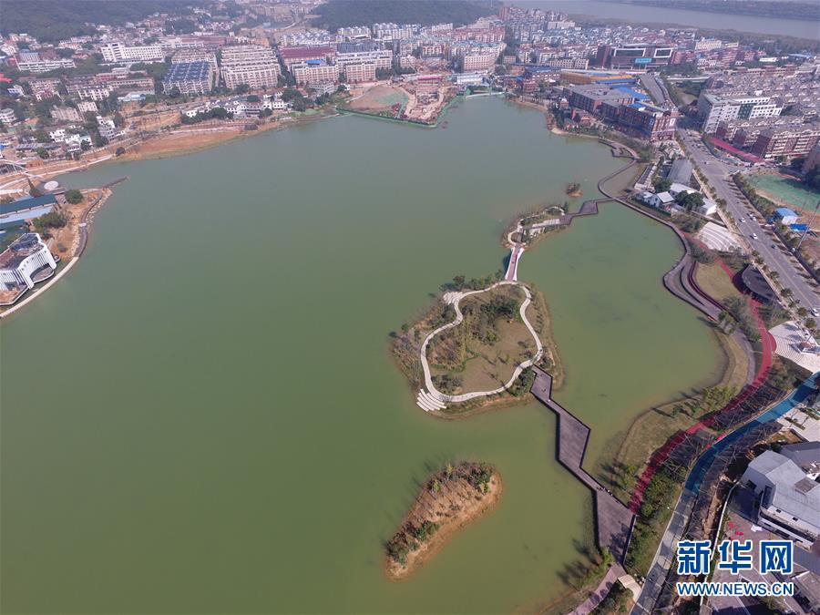 空中俯瞰長(zhǎng)沙后湖全景(10月29日無人機(jī)拍攝)。 近日,湖南長(zhǎng)沙后湖水環(huán)境綜合整治工程全面完工,沿湖生態(tài)環(huán)境舊貌換新顏,成為市民游客休閑散步的好去處。 新華社記者 龍弘濤 攝