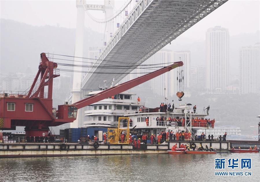 重慶萬州墜江公交車打撈深潛設(shè)備到位 潛水員正下潛勘測
