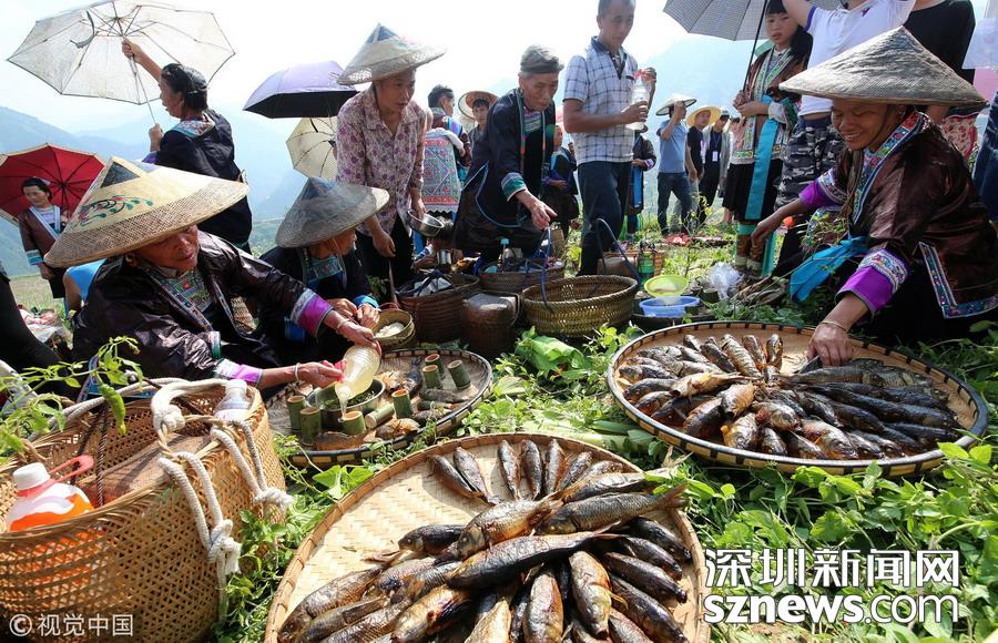 深圳新聞網訊 2018年9月15日,廣西柳州市融水苗族自治縣喜迎中國首屆“農民豐收節(jié)”——2018金秋燒魚季啟動儀式在桿洞鄉(xiāng)花孖苗寨舉行,數百名苗族群眾和游人共同開展了水田拔河、田間捉魚、傳統(tǒng)打谷和燒魚等活動,慶祝豐收。