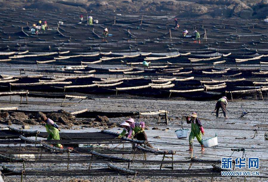 10月24日,福建莆田蔣山村村民在收獲紫菜?!⌒氯A社記者姜克紅 攝