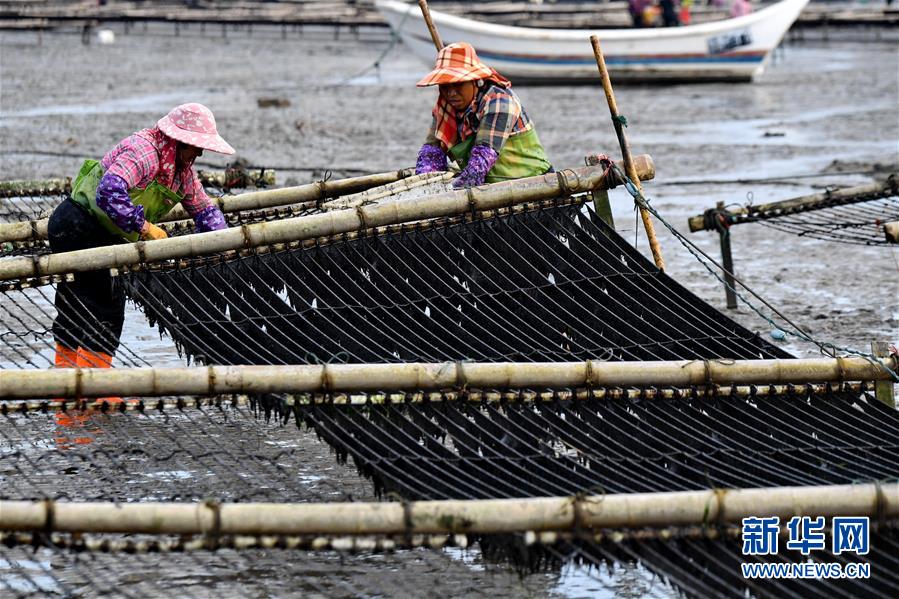 10月24日,福建莆田蔣山村村民在收獲紫菜?! ⌒氯A社記者張國(guó)俊 攝
