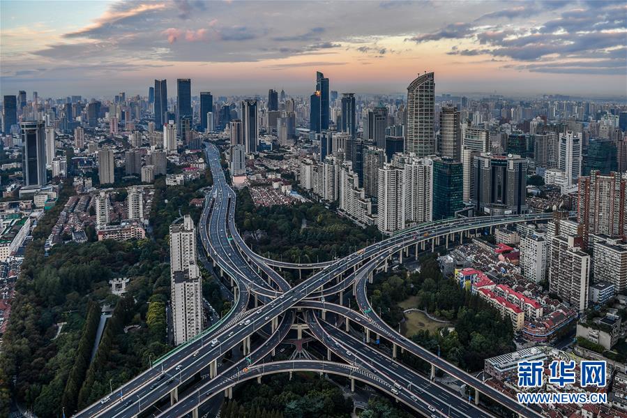 11月2日拍攝的上海市區(qū)景觀。首屆中國國際進(jìn)口博覽會(huì)即將在上海開幕。美麗的上海張開懷抱,迎接八方來客。 新華社記者 李鑫 攝