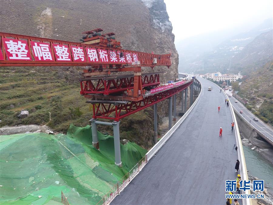 這是11月3日無人機拍攝的正在合龍的克枯大橋。 當(dāng)日,位于四川省阿壩藏族羌族自治州的汶(川)馬(爾康)高速的控制性工程克枯大橋合龍。 新華社記者 劉坤 攝