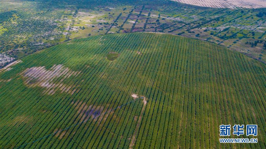 內蒙古達拉特旗白土梁林場的沙棘林(8月1日無人機拍攝)。 新華社記者張善臣攝