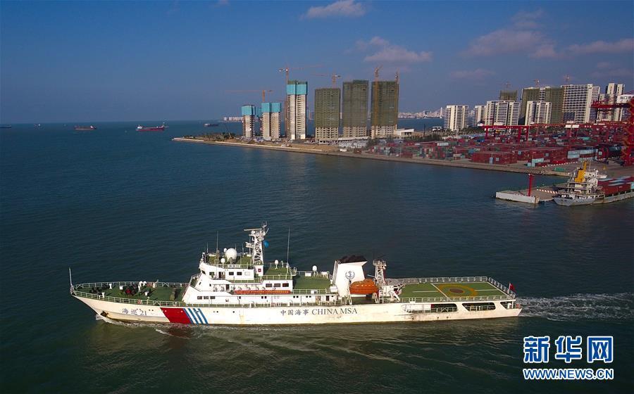 11月3日,“海巡21”輪駛出港口。 當(dāng)日,隨著“海巡21”輪緩緩駛離海口海事監(jiān)管基地碼頭,由瓊桂粵海事部門共同開(kāi)展的瓊州海峽、北部灣及環(huán)海南島水域跨轄區(qū)聯(lián)合巡航執(zhí)法活動(dòng)揭開(kāi)序幕。 新華社記者楊冠宇攝