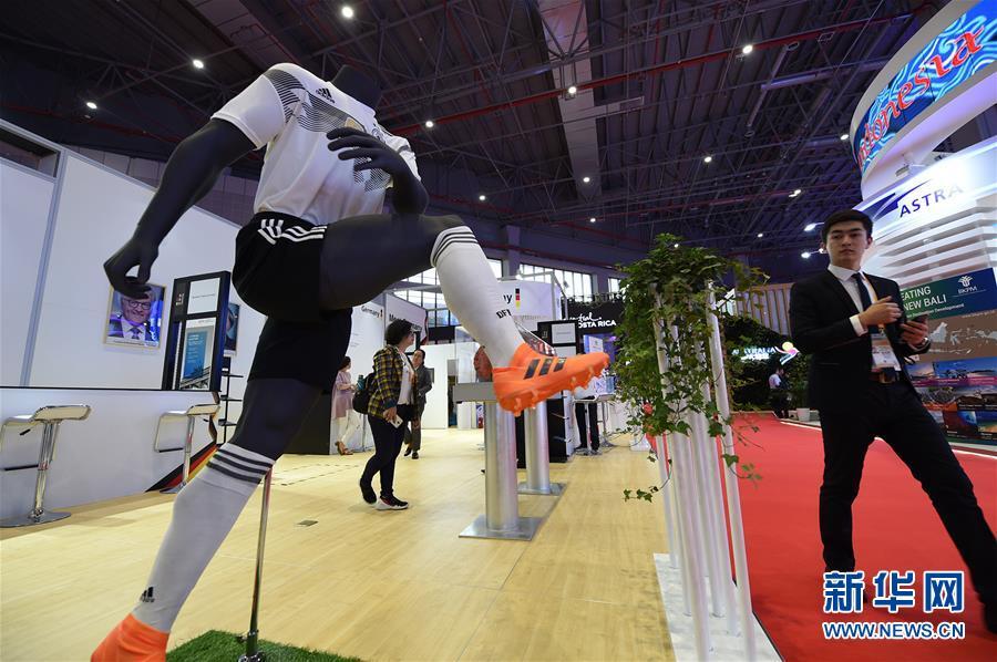 這是11月5日在英國展館內(nèi)展出的一座英格蘭足球超級(jí)聯(lián)賽冠軍獎(jiǎng)杯的復(fù)制品。 新華社記者 劉大偉 攝