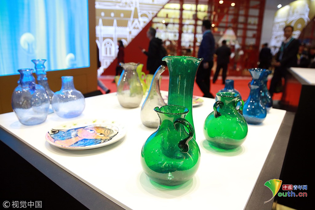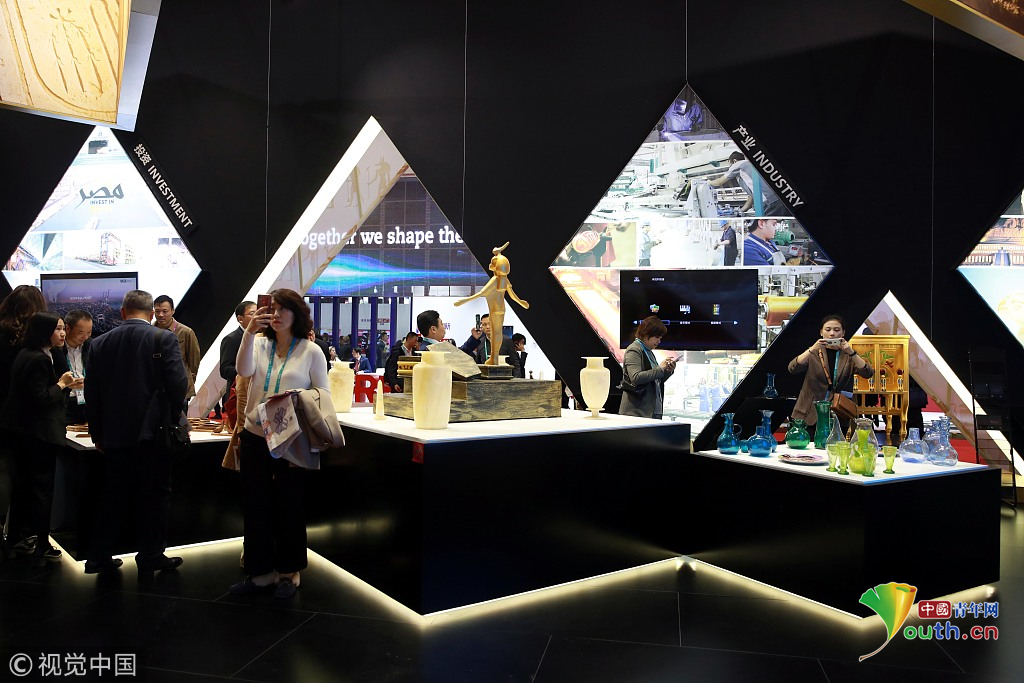 2018年11月6日,上海,首屆中國國際進(jìn)口博覽會國家展上,共有82個國家、3個國際組織設(shè)立了71個展臺。埃及館。視覺中國