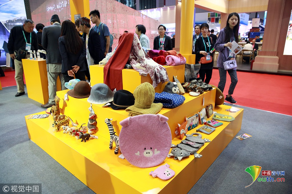 2018年11月6日,上海,首屆中國國際進(jìn)口博覽會國家展上,共有82個國家、3個國際組織設(shè)立了71個展臺。尼泊爾館。視覺中國