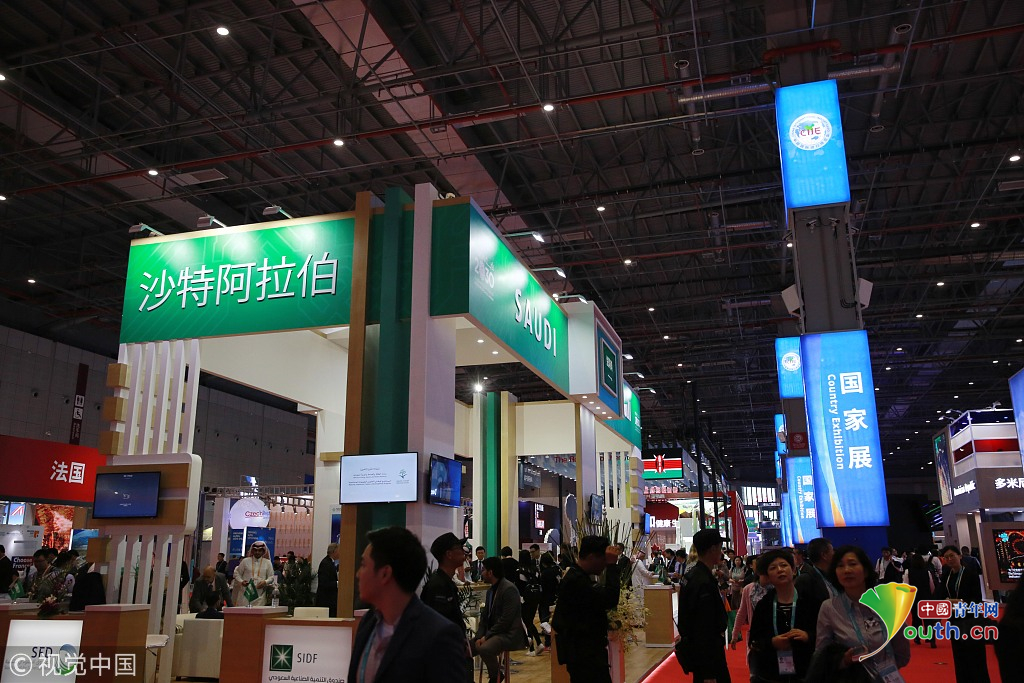 2018年11月6日,上海,首屆中國國際進(jìn)口博覽會國家展上,共有82個國家、3個國際組織設(shè)立了71個展臺。沙特阿拉伯館。視覺中國