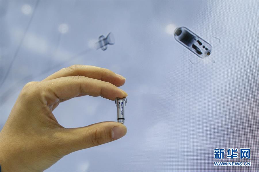 11月6日,美國美敦力公司工作人員展示全球最小的心臟起搏器。它也是全球首款無導(dǎo)線心臟起搏器,體積僅有膠囊大小,重量僅2克。 新華社記者 張玉薇 攝