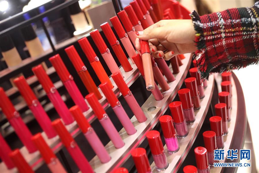 11月6日,參觀者在歐萊雅集團(tuán)展臺試用化妝品。 新華社記者 陳飛 攝