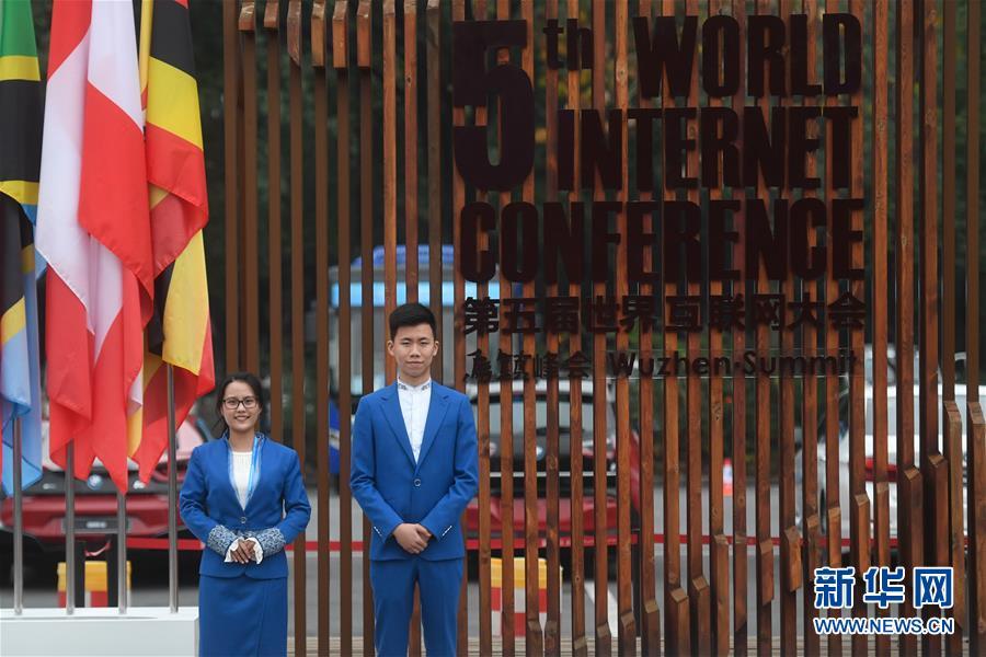 11月6日,來自浙江外國語學院的大學生志愿者在烏鎮(zhèn)迎接參會嘉賓。 新華社記者黃宗治攝