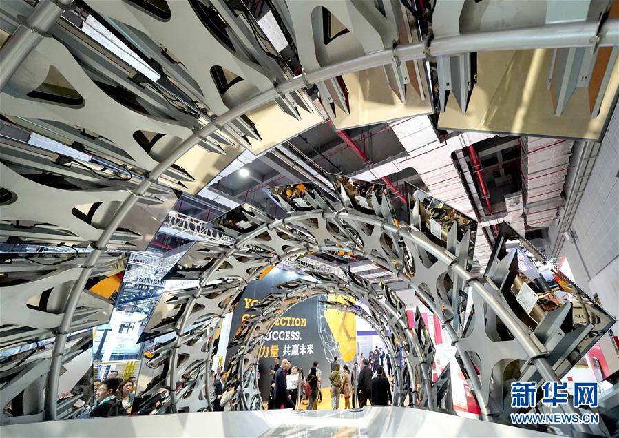 11月6日,德國AVANCIS公司展出可用作幕墻的發(fā)電玻璃。 新華社記者 陳建力 攝