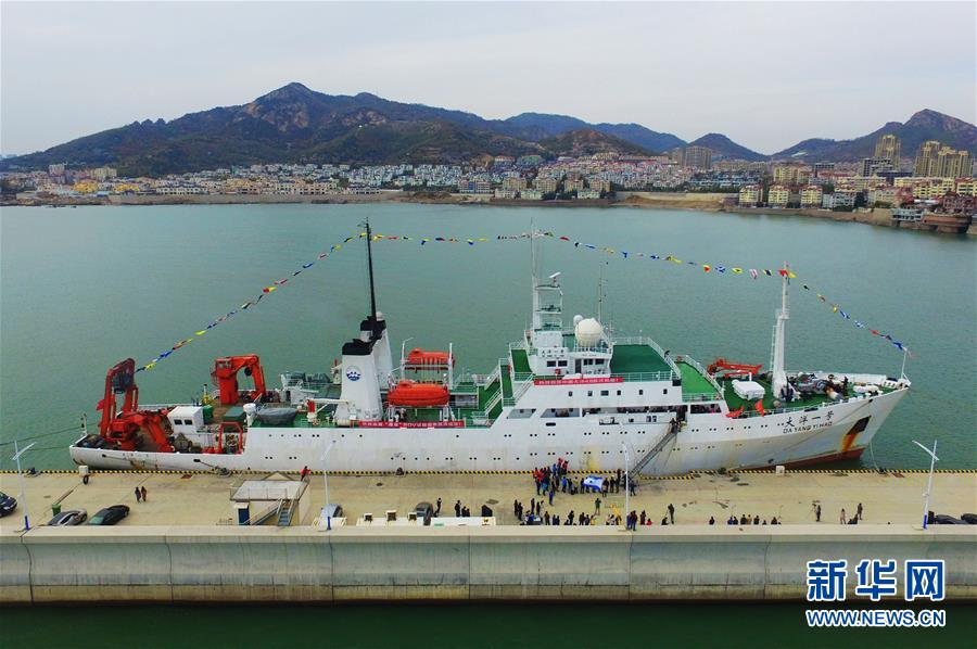 11月7日,“大洋一號”??吭谇鄭u市嶗山區(qū)的青島海洋科學(xué)考察基地碼頭(無人機(jī)拍攝)。 新華社發(fā)(王海濱 攝)