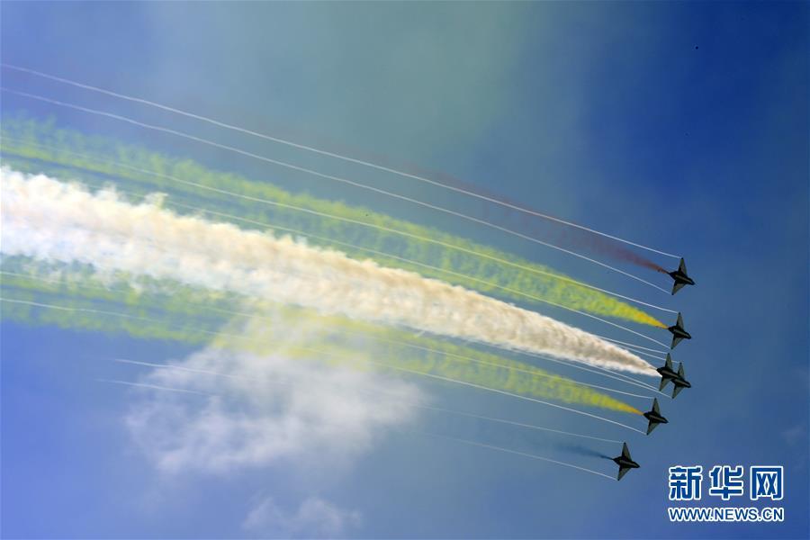 11月6日,中國空軍八一飛行表演隊(duì)在航展現(xiàn)場進(jìn)行飛行表演。當(dāng)日,第十二屆中國國際航空航天博覽會在珠海開幕。 新華社記者劉芳攝