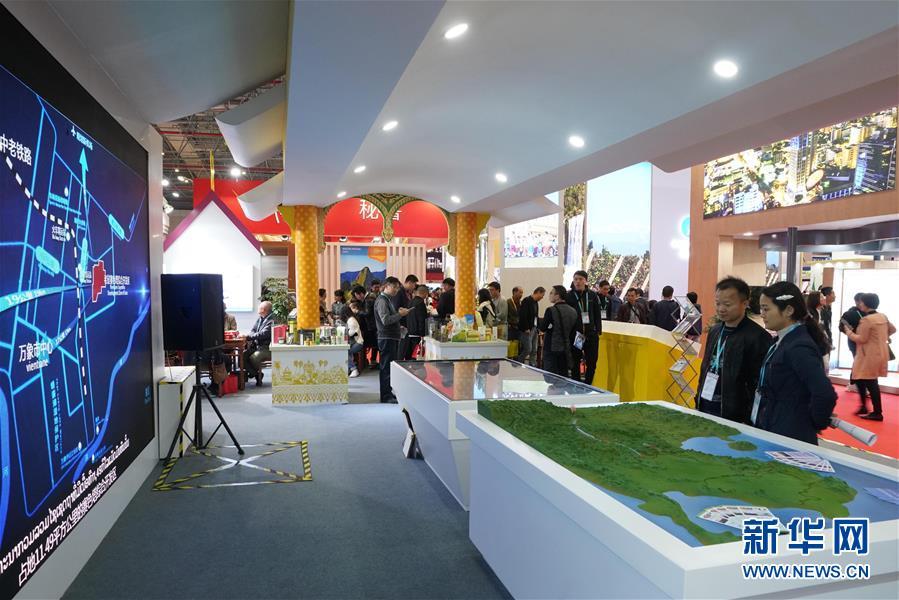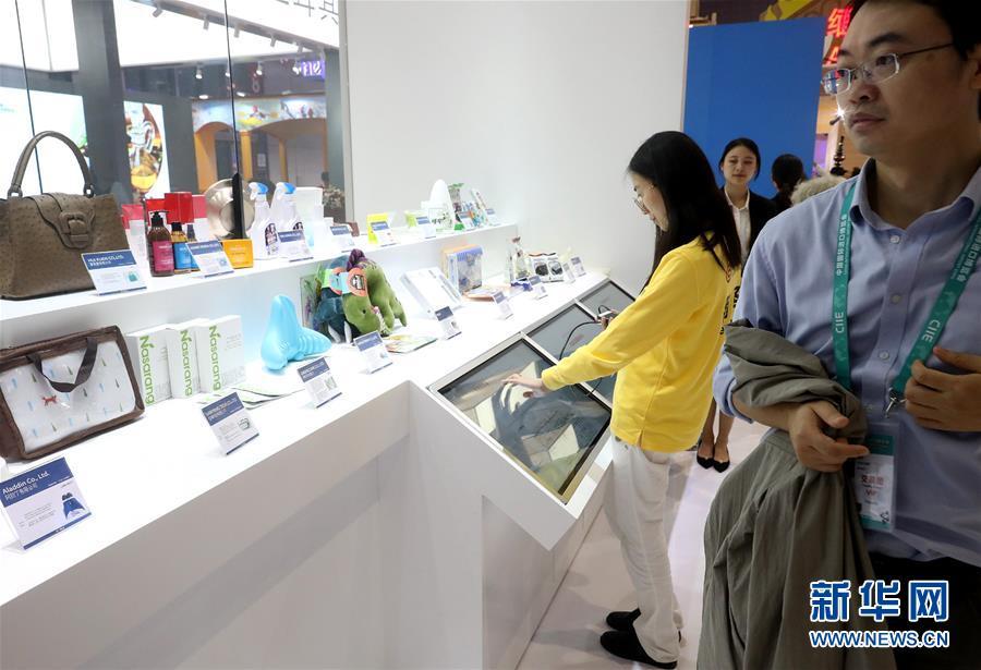 11月8日,人們在老撾展區(qū)參觀。 中國國際進(jìn)口博覽會11月5日在上海開幕。國家貿(mào)易投資綜合展(國家展)是中國國際進(jìn)口博覽會的重要內(nèi)容,共有82個國家、3個國際組織設(shè)立71個展臺。 新華社記者 程麗 攝