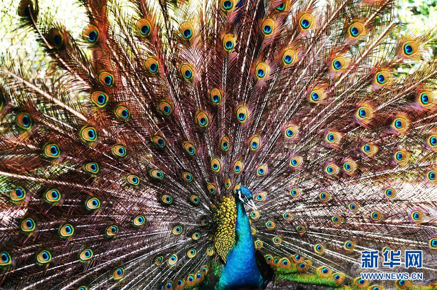 5月16日,在重慶市銅梁區(qū)永嘉鎮(zhèn)高龍村藍孔雀養(yǎng)殖場內(nèi),一只藍孔雀開屏。 新華社記者 王全超 攝 |