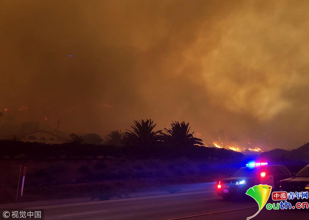 當地時間11月9日下午,美國加利福尼亞州南部文圖拉郡(Ventura County)等地熊熊山火已延燒逾萬英畝,濃煙遮天蔽日。