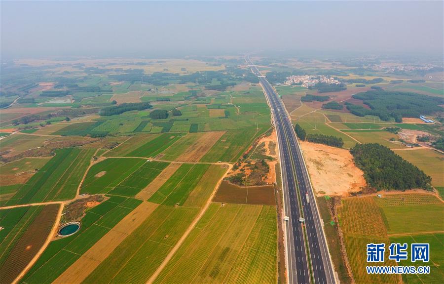 動車在廣西南寧市的田野上行駛(2017年7月15日無人機(jī)拍攝)。 近年來,廣西在海、陸、空立體式推進(jìn)與東盟國家的互聯(lián)互通,扎實(shí)推進(jìn)“高速縣縣通、高鐵市市通、民航片片通、內(nèi)河條條通”建設(shè)。目前高鐵運(yùn)營里程1751公里,高速公路總里程突破5000公里,沿海和內(nèi)河港口年吞吐能力分別達(dá)2.5億噸和1.1億噸,機(jī)場旅客年吞吐能力近3000萬人次,內(nèi)外交通便捷度全面提升。 新華社記者 黃孝邦 攝