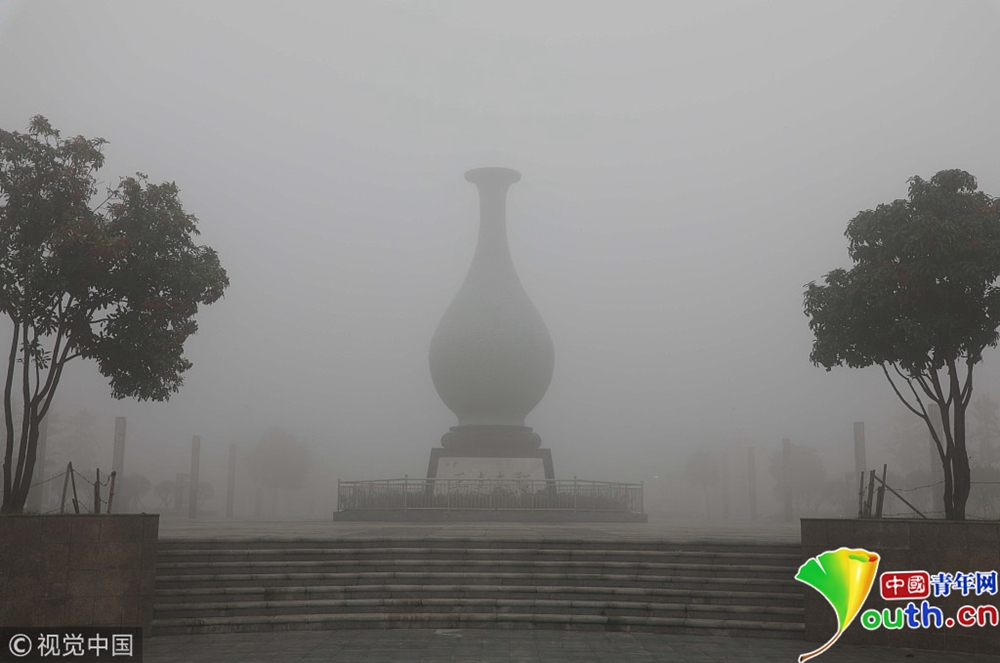 河南平頂山大霧彌漫 城區(qū)一片白茫茫