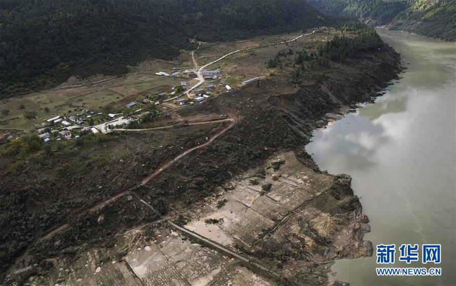 10月20日拍攝的西藏雅魯藏布江米林縣堰塞湖自然過(guò)流后的加拉村。 10月19日13時(shí)30分,西藏雅魯藏布江米林縣堰塞湖開始自然過(guò)流。記者從應(yīng)急管理部牽頭的聯(lián)合工作組獲悉,截至20日7時(shí),雅魯藏布江堰塞湖壩前水位已下降56米,估算留存水量1.6億立方米,堰塞湖洪水威脅得到緩解,防洪安全風(fēng)險(xiǎn)大大減輕,并將繼續(xù)降低。 10月20日,記者乘坐直升機(jī)從空中拍攝了雅魯藏布江堰塞湖自然過(guò)流的畫面。 新華社記者普布扎西攝