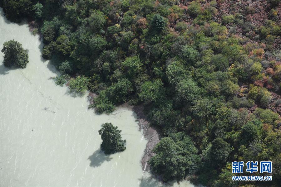 洪峰過(guò)境后的西藏雅魯藏布江墨脫段局部畫面(10月20日無(wú)人機(jī)拍攝)。 新華社記者劉東君攝