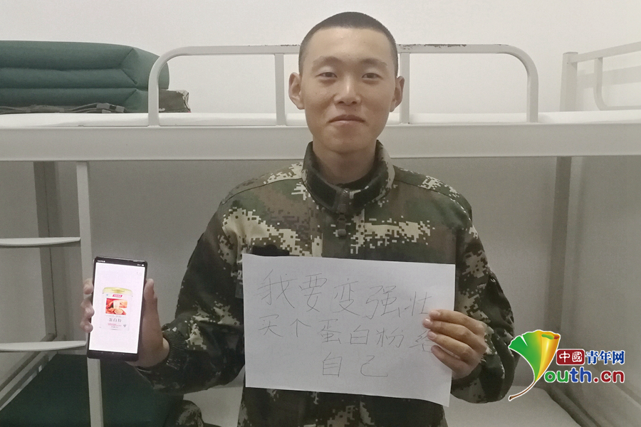 “班長總說我太瘦,買罐蛋白粉,我要快點變強壯。”武警北京總隊執(zhí)勤第二支隊供圖。