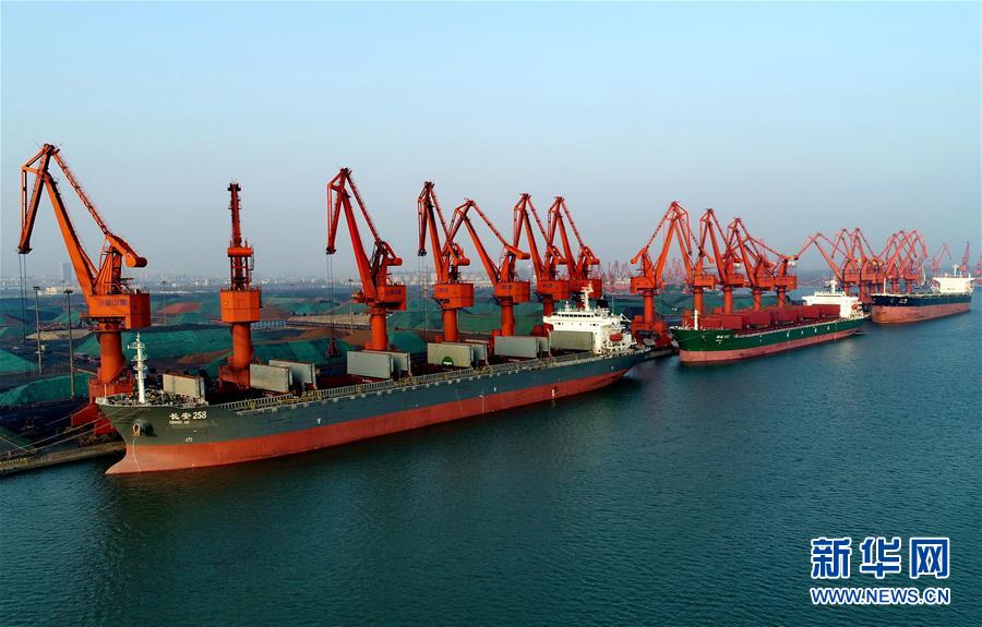 輪船靠泊在唐山港京唐港區(qū)散貨碼頭卸載(11月12日無人機(jī)拍攝)。記者從河北省交通運(yùn)輸廳港航管理局獲悉,今年1至10月,河北港口完成貨物吞吐量達(dá)9.5億噸,同比增長(zhǎng)4.3%。 新華社記者 楊世堯 攝