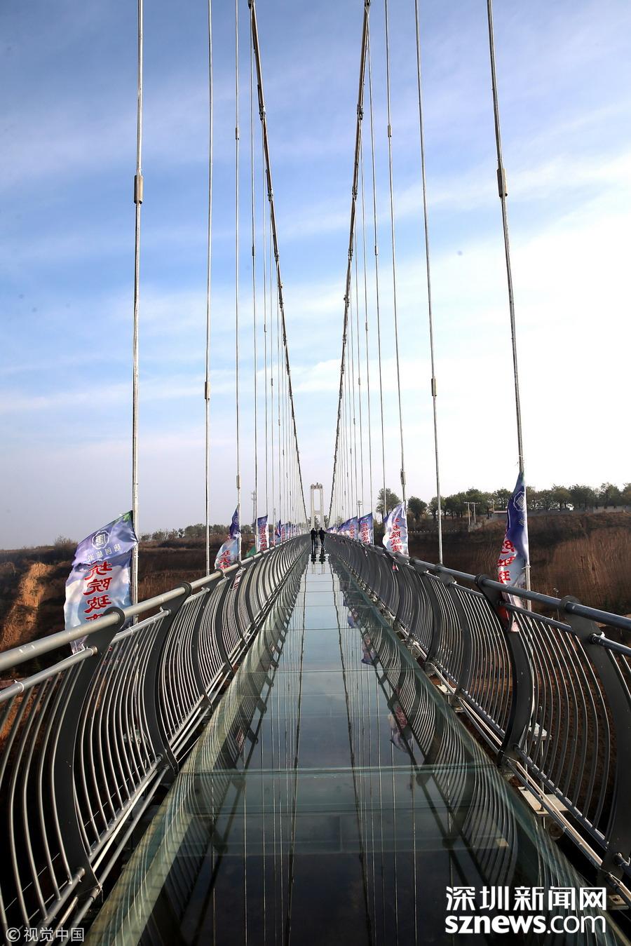 深圳新聞網(wǎng)訊 河南三門峽,位于陜州地坑院景區(qū)玻璃天橋。該項目橋梁總投資2600萬元,全長368米,寬3米,高108米,是目前河南省內(nèi)最長的玻璃天橋,還將陸續(xù)對外開放夜景效果、聲光效果以及更多的體驗效果,逐步打造成整個豫西地區(qū)乃至全省的旅游打卡新地標(biāo)。