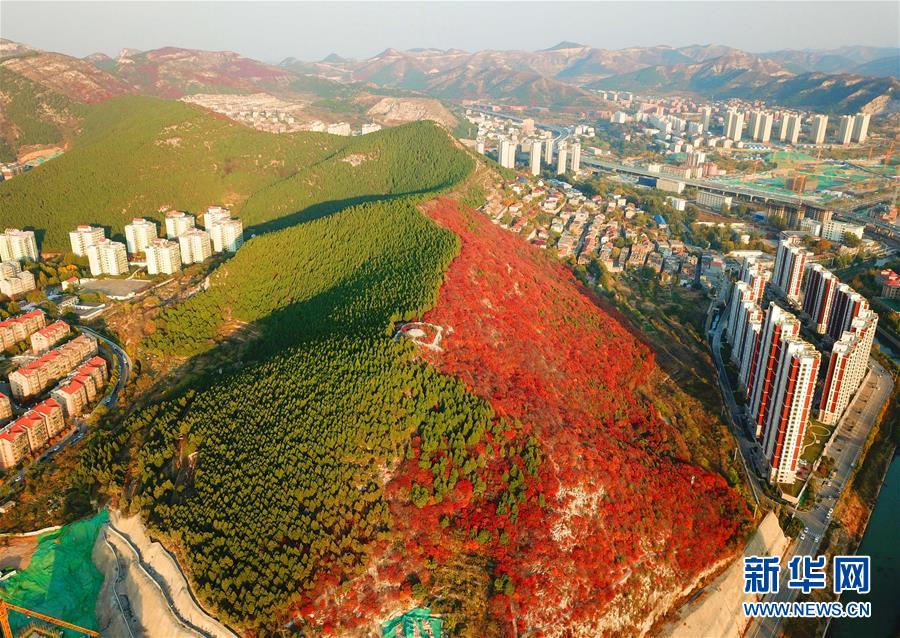 這是“一山雙色”的山東濟(jì)南楔子山(10月31日無人機(jī)拍攝)。 新華社記者朱崢攝