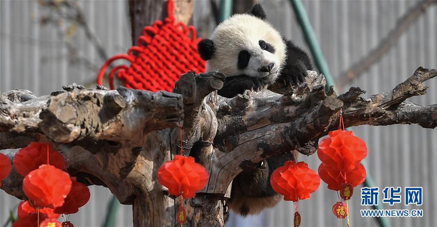 這是在中國大熊貓保護研究中心臥龍神樹坪基地拍攝的大熊貓(2018年2月15日攝)。 新華社記者 薛玉斌 攝