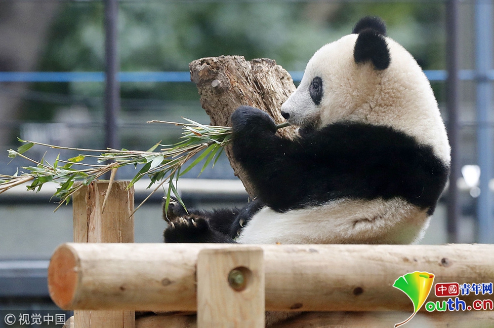 旅日大熊貓和媽媽“分居” 專心啃竹 ...