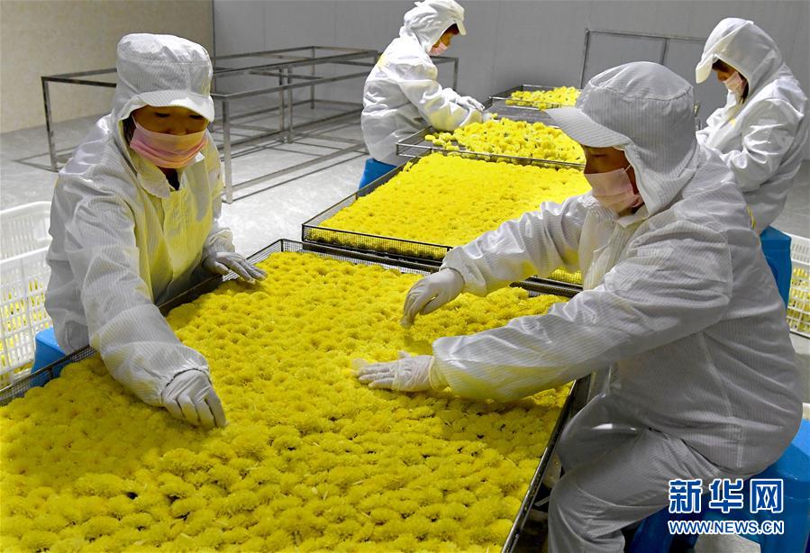 11月14日,河南省內(nèi)鄉(xiāng)縣乍曲鎮(zhèn)水溝村一家菊花茶加工企業(yè)工人在挑揀菊花。 近年來(lái),河南省內(nèi)鄉(xiāng)縣依托資源優(yōu)勢(shì),把發(fā)展特色農(nóng)業(yè)作為精準(zhǔn)扶貧的重要舉措,采取“公司+合作社+農(nóng)戶”的方式,招引農(nóng)業(yè)龍頭企業(yè)發(fā)展菊花種植產(chǎn)業(yè),把菊花加工成茶飲、藥材等高附加值產(chǎn)品,累計(jì)帶動(dòng)150余戶貧困戶就業(yè)增收。 新華社記者 李安 攝