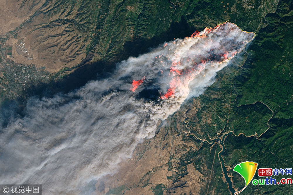 截至9日上午,山火的過(guò)火面積已經(jīng)達(dá)到240平方公里。山火不僅燒毀有2.7萬(wàn)居民的天堂鎮(zhèn),還對(duì)附近有9萬(wàn)人口的城市奇科構(gòu)成直接威脅。