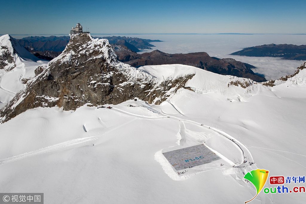 “少女峰”上展示的十萬多張明信片,呼吁關(guān)注氣候變暖。